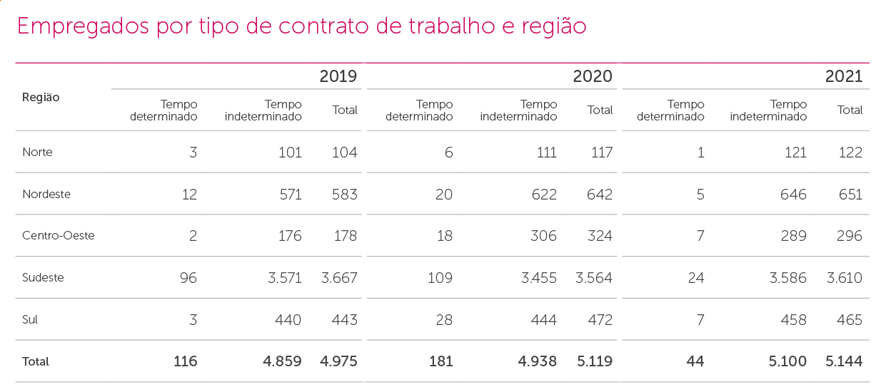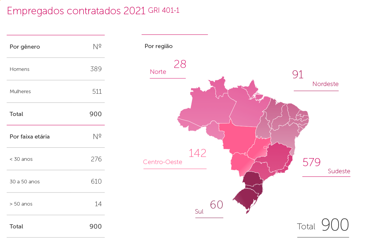 Em dezembro de 2021, 5.144 profissionais integravam a Geração Aché, um aumento 0,49% em relação a 2020. No ano, foram criadas 262 novas vagas e 840 pessoas foram promovidas. GRI 102-8