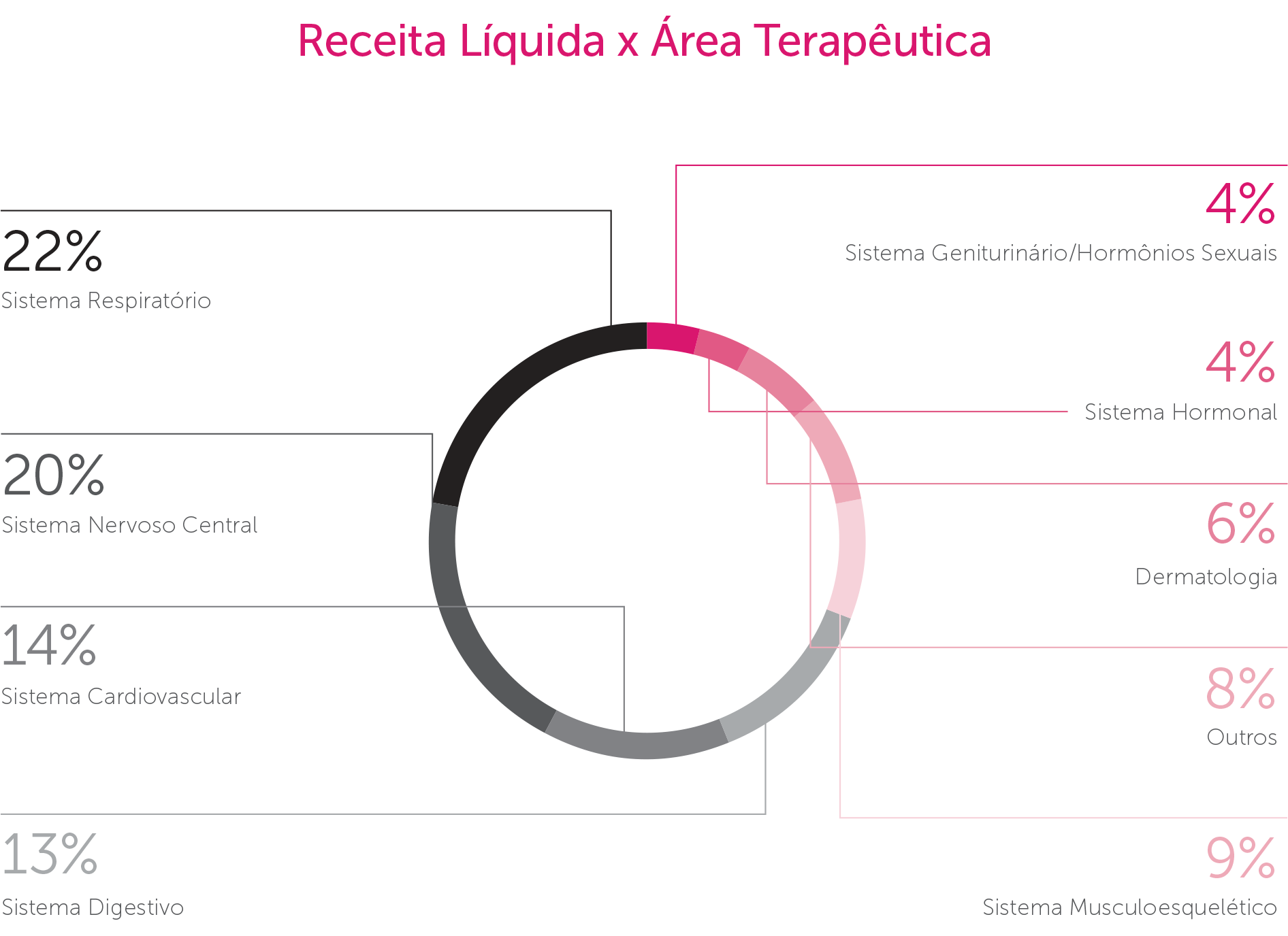 Estamos posicionados entre as cinco maiores corporações farmacêuticas do Brasil, conforme a metodologia Pharmacy Purchase Price (PPP). Contamos com uma das maiores forças de vendas comercial e de demanda do país, o que proporciona uma ampla capilaridade para promover produtos, compartilhar conhecimento científico com profissionais da saúde e oferecer ao consumidor final um portfólio completo com qualidade e segurança comprovadas.