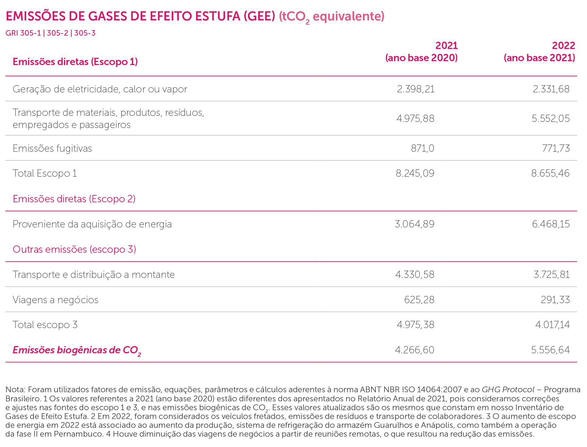 O aumento das emissões do escopo 2 está relacionado ao aumento do consumo total de energia. Visando reduzir as emissões, estruturamos um plano de mitigação, cujas metas, percentuais e prazos serão estabelecidos em 2023.