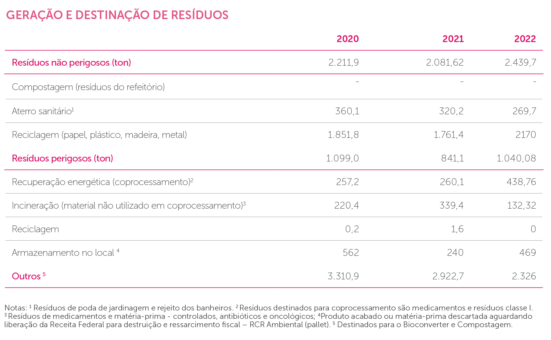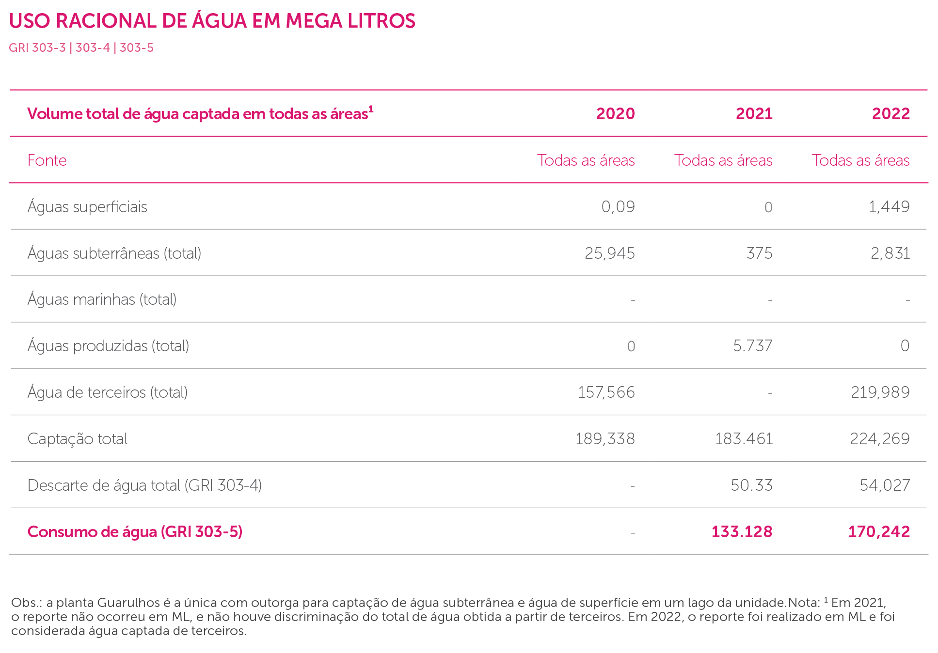 O aumento do consumo de água no ano de 2022 é reflexo do aumento da produção, início de operações da fase II (fabricação de sólidos) na unidade Pernambuco e ampliação de área produtiva (microdosagem) em São Paulo.